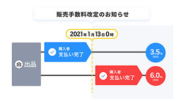 なお、改定日より前に出品された商品でも、21年1月13日0時以降に購入者による支払いが完了した場合は、新しい販売手数料が適用される。出品時に表示される販売手数料と実際にかかる販売手数料が異なる場合があるため、注意するよう呼び掛けている。