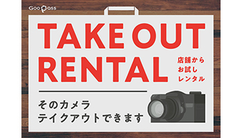 テイクアウトレンタルは、ビックカメラの店頭でカメラ機材を購入する際に、購入するかどうかをその場で決めずに、新品在庫をお試しレンタル品として持ち帰って試せるGooPassの新プラン。持ち帰って試した結果、気に入った場合は後日そのまま購入ができ、また、購入に至らない場合でも一定期間後に返却ができる、カメラの新しい購入手段となっている。