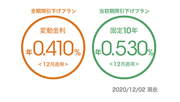 「auモバイル優遇割スタートキャンペーン」として、既存のauじぶん銀行の住宅ローン契約者にも、年0.07%の金利引下げを適用する。エントリー期間は12月1日~21年5月31日。詳細な案内は、auじぶん銀行から別途送付する。住宅ローンauモバイル優遇割の提供開始を記念し、既存契約者も、同期間中のじぶんでんきの新規申込で、住宅ローンじぶんでんき優遇割を適用する。