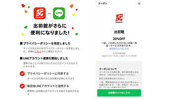 LINEポイントクラブで「出前館20OFFクーポン」を先着30万枚限定で提供