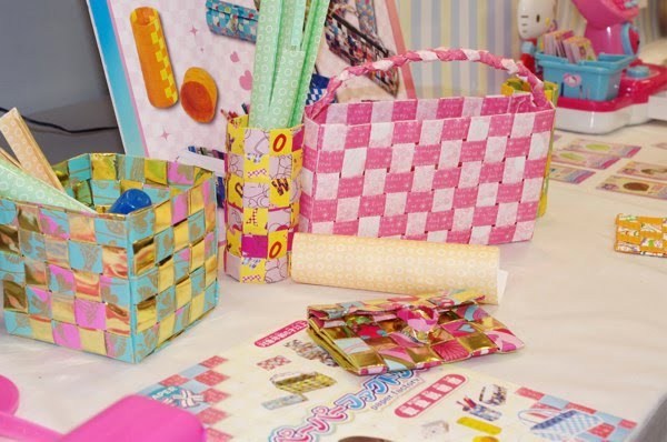 新聞、チラシ、包装紙などを使って、バッグや財布、小物入れを作ることができる。