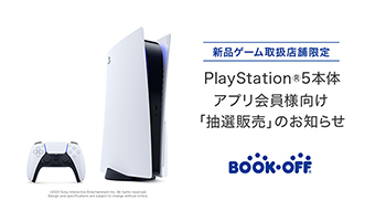 ブックオフコーポレーションは12月4日~13日17時59分の期間、「BOOKOFF」公式アプリ会員を対象にした「PlayStation 5(PS5)」「PlayStation 5デジタル・エディション」の抽選販売を実施する。