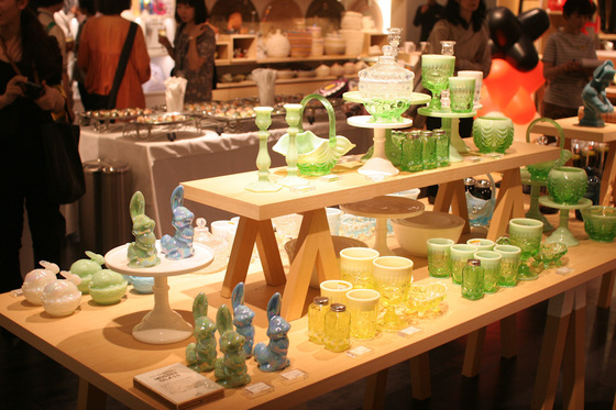 ちょっとシュールな花瓶やキャンドルなどの置き物も、いちいちセンスがいい。若手現代アーティストのミニギャラリーも。