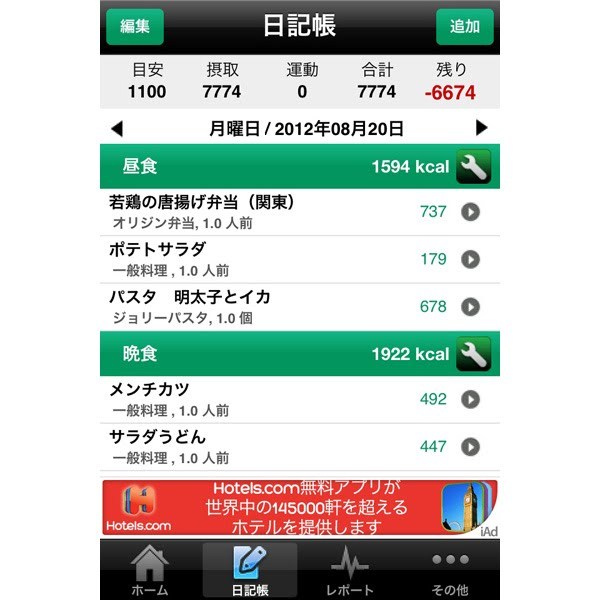 このアプリによると、ダイエット開始前の摂取カロリーは一日7,774kcal。