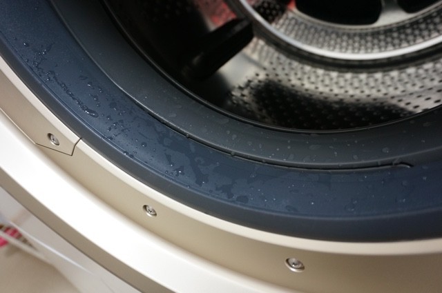 前面のゴムパッキンは、洗濯後に水滴が残ってしまいます。これは水を噴射して洗うというドラム式の宿命かもしれませんね。