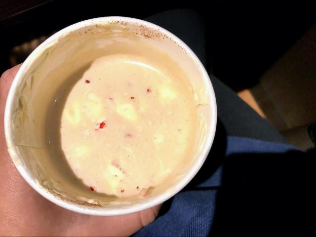 クリームをそのまま食べてもいいのですが、ラテと混ぜ合わせることでよりティラミスラテの風味がリッチになるのでおすすめです。