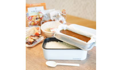付属のおかずトレイにおかずを入れて炊飯窯の上にセットすれば、炊飯時の水蒸気で加熱して炊飯と同時に調理が可能となる。トレイに最大400mlまでの分量が入れられてレトルトカレーやどんぶりの素を入れて温めたり、餃子や野菜を入れて蒸すことができる。本体は丸洗いが可能。幅240×奥行き100×高さ113mmとコンパクトなサイズで、リビングだけでなく自分の部屋や職場でも使える。