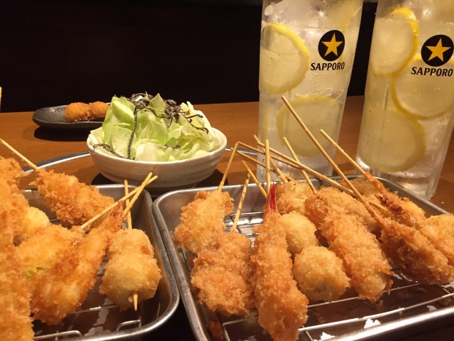 ■サクサク衣にソースたっぷり「串カツ」と強烈レモンのスッキリ飲み口「レモンサワー」