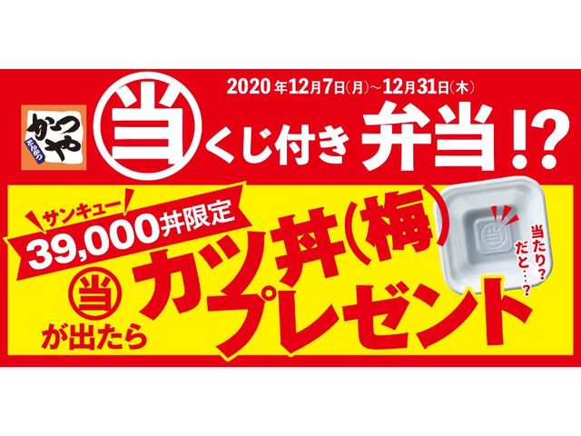 全国のとんかつ専門店「かつや」にて、12月7日(月)~12月31日(木)の期間限定で、「当たりくじ付き弁当」が販売されています。