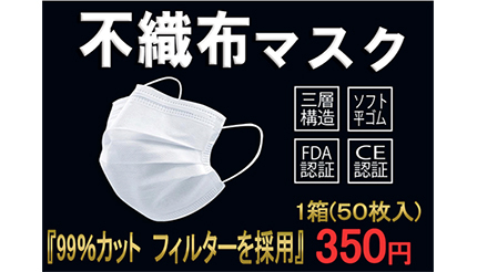 大運は、不織布マスクを業界最安値水準の1箱(50枚入り)当たり税別350円で12月15日8時から販売している。48時間限定のタイムセールも実施中だ。