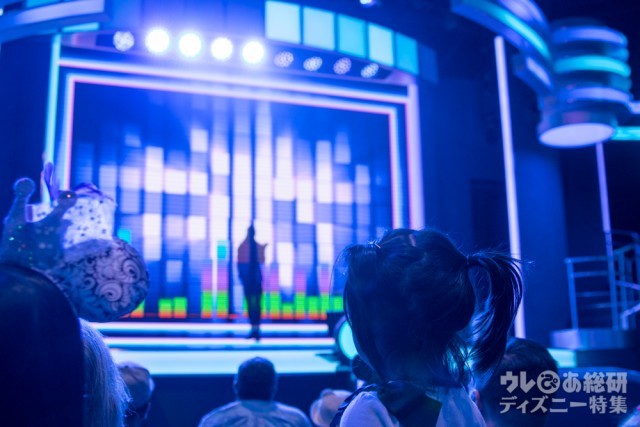 屋内の特設会場では、ミッキー型のミラーボールがあるなど、開演前からダンス・パーティーの雰囲気で盛り上がっています。