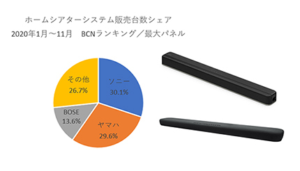 ホームシアターシステムの年間No.1を巡り、ソニーとヤマハが激しいシェア争いを繰り広げている