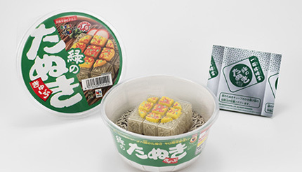 緑のたぬききゅーぶは、パッケージが実物の緑のたぬきとそっくりで、ふたを開けると緑のたぬきを3Dスキャンして制作した天ぷらと麺が立体的にデザインされたルービックキューブが入っている。ルービックキューブの天面に実物と同様に天ぷらが乗っていて、側面と底面に麺が立体的にデザインされている。