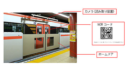 こうした課題を解決するために開発されたのが、QRコードで開閉する仕組みだ。QRコードを車両のドアに貼り、ホーム上のカメラ(読み取り装置)で車両ドア数、編成車両数などの情報やQRコードの動きを検知。車両ドアの開閉に合わせてホームドアを開閉する。