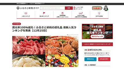 ふるさと納税比較サイト「ふるさと納税ガイド」は12月25日、最新の「ふるさと納税の返礼品 人気ランキング」を発表した。