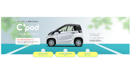 トヨタ自動車は、最高速度60km/h・2人乗りタイプの超小型EV「C+pod(シーポッド)」を12月25日に発売した。まずはEV普及に向けて検討を進めてきた法人・自治体限定で販売し、個人向けを含めた本格販売は、2022年を目途に開始する計画。