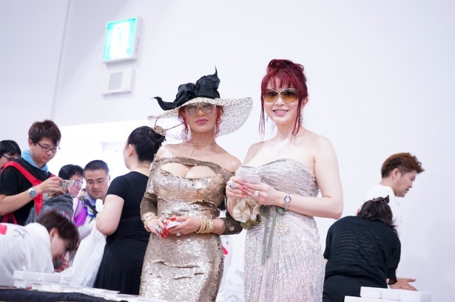 叶姉妹はゴールドに輝くゴージャスなドレスを身に纏い、頒布した姉・恭子さんがデザインしたTシャツ、妹・美香さんのコスプレ写真やイラストが収録された同人誌を購入した人に、特典として用意したブロマイド(名刺)を配布。優しく微笑みかけながらそれぞれが手渡していました。