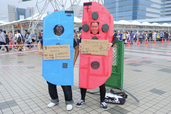 ほかにも迫力ある『新世紀エヴァンゲリオン』初号機のコスプレや、TVアニメ化が決定している『ポプテピピック』ポプ子とピピ美、かわいいフリー素材集として知られる『いらすとや』より肉に塩をふる男性のイラスト、さらには品薄ゲーム機「Nintendo Switch」のコントローラーに挑戦するという猛者コスプレイヤーも。
