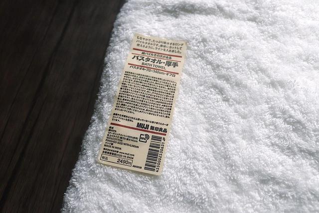 無印良品の「綿パイルその次があるバスタオル・厚手(税込2,490円)」。厚手タイプは70cm×140cmとかなり大きく、サイズ的にボリュームがあります。