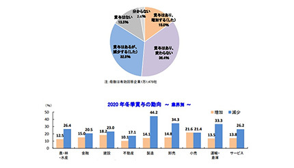 20年の冬季賞与は32.5%の企業が減少したと回答した