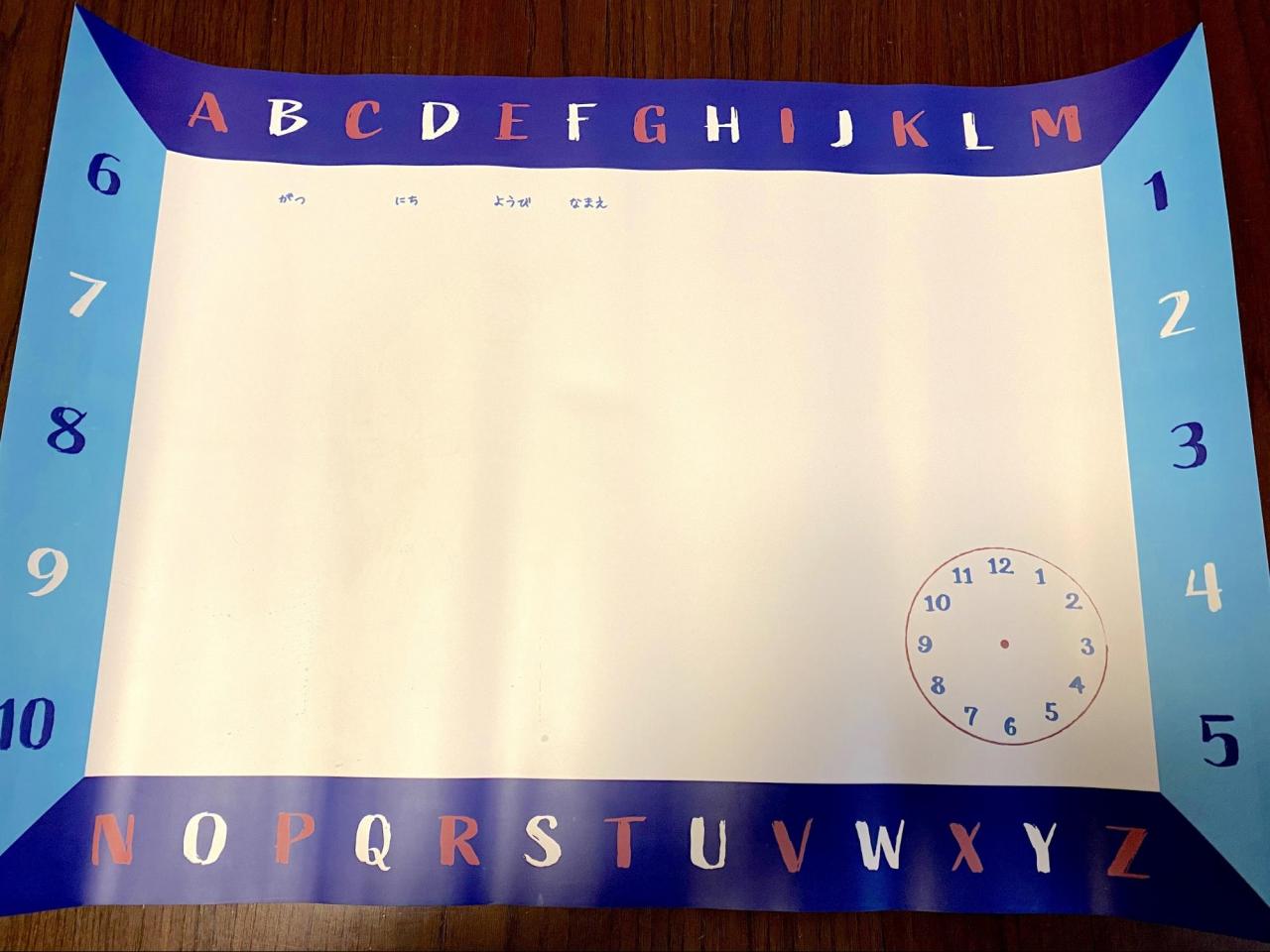 反対側は自由にお絵描きできそうな広いスペースと、時計の絵が!親子でお風呂に入りながら時計のお勉強をすることもできます。ふちの数字やアルファベットの柄も遊びの中で自然に子どもが形を覚えられるような仕組みになっています。
