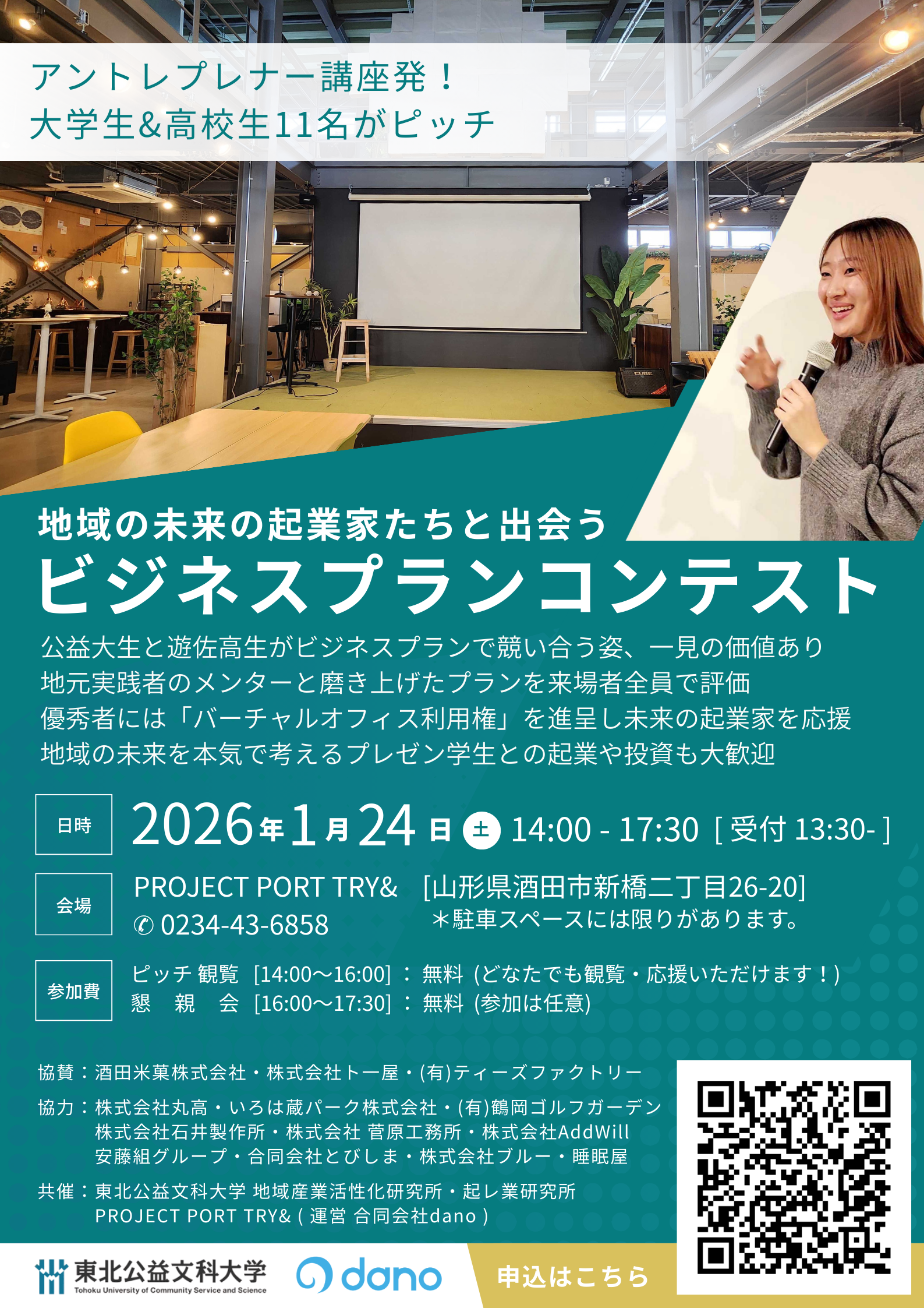 東北公益文科大学学生と遊佐高校生徒によるビジネスプランコンテストを山形県酒田市『PROJECT PORT TRY&(プロジェクトポートトライアンド)』で開催 [2026年1月24日(土)] -