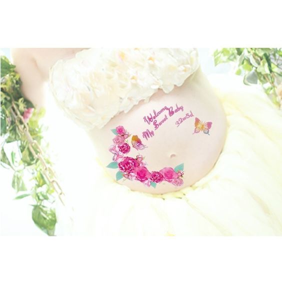 妊娠後期、臨月の大きなお腹にマタニティペイントを施すことで、写真に残すのが一般的です。