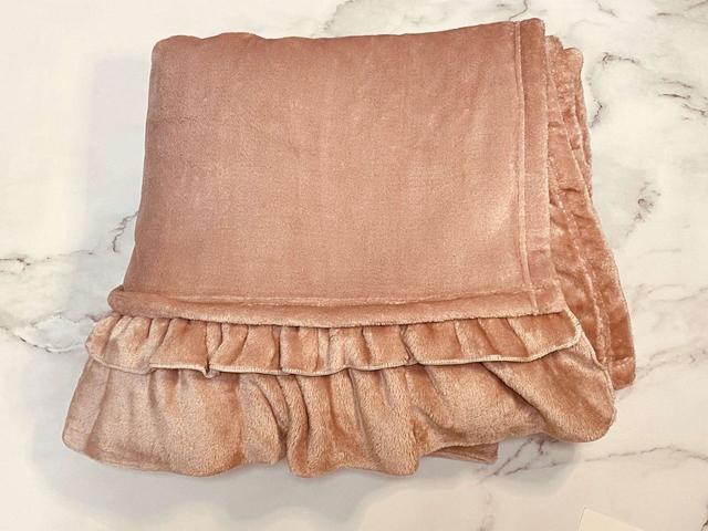 大人女子の部屋に馴染みやすい、ダスティーピンクカラーに裾のフリルがポイント。