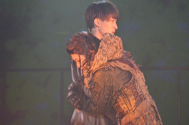 ところが、舞台上に待っているのは巨大スクリーンに映し出された背景と剥き出しの鉄骨というシンプルなセット。近未来な風景とのギャップに驚かされてしまうのだが、そんな観客の反応もよそに、突如、美しきソルジャーたちが次々と雪崩れ込んできて、いきなり大乱戦が始まっていく。細かい説明もなくいきなり始まるド派手なオープニングは、まるで映画のワンシーンのよう。きっと誰もが、あっという間にセットの疑問など消えて、ただただ迫力と美しさに骨抜きにされてしまうはず!