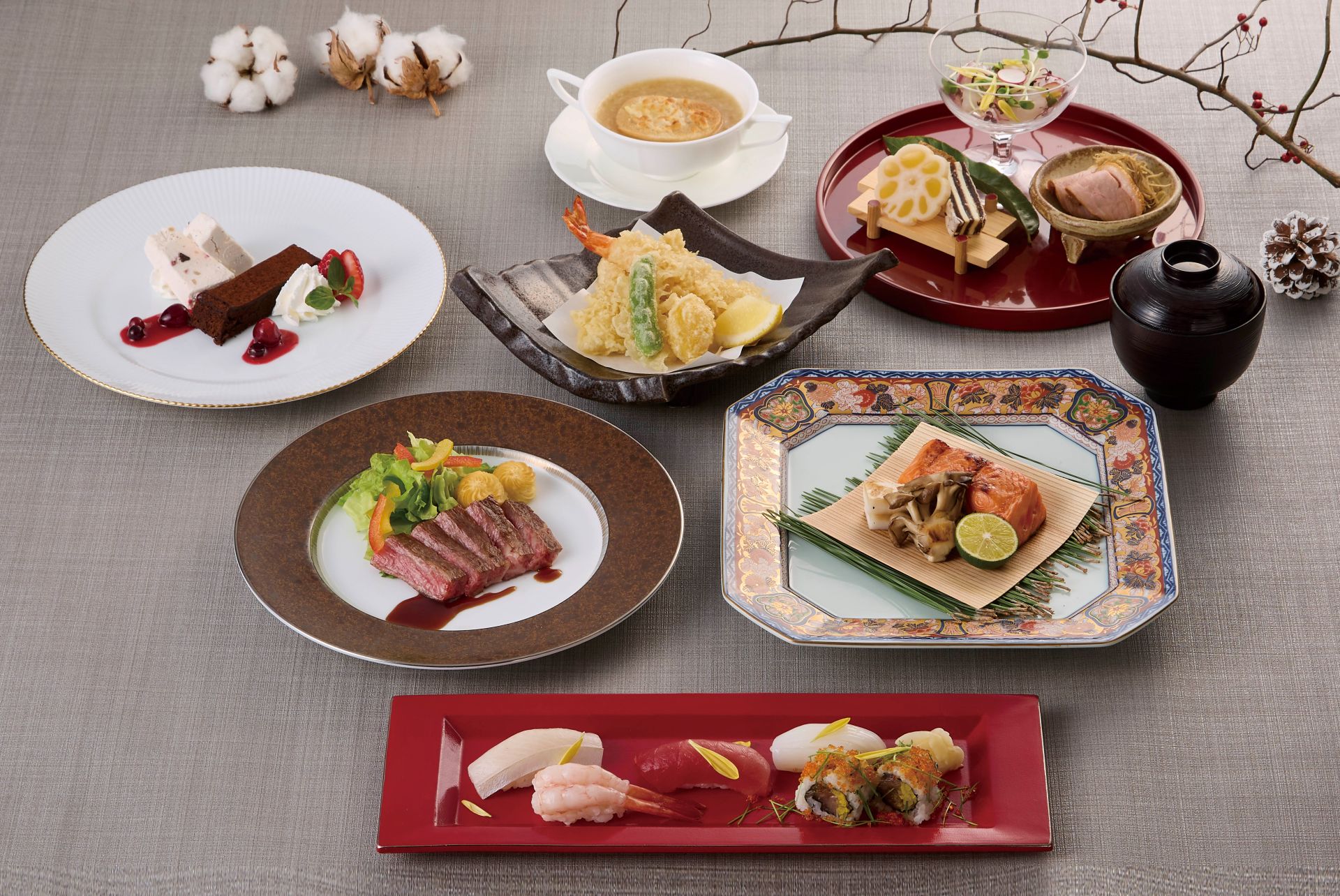 【明治記念館】“レストラン羽衣【Christmas2025】「クリスマスランチ」提供開始” 羽衣自慢の鮨・天麩羅・鉄板焼にガトーショコラとアイスチーズケーキの華やかなデザートなどを添えて -