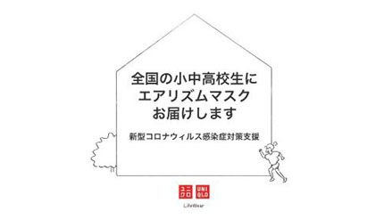 ユニクロ、新型コロナ対策で全国の小中高校にエアリズムマスクを寄贈