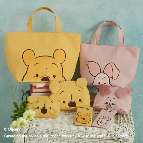 くまのプーさんとピグレットがトートバッグとポーチ、ティッシュケース、アイフォンケースになりました。