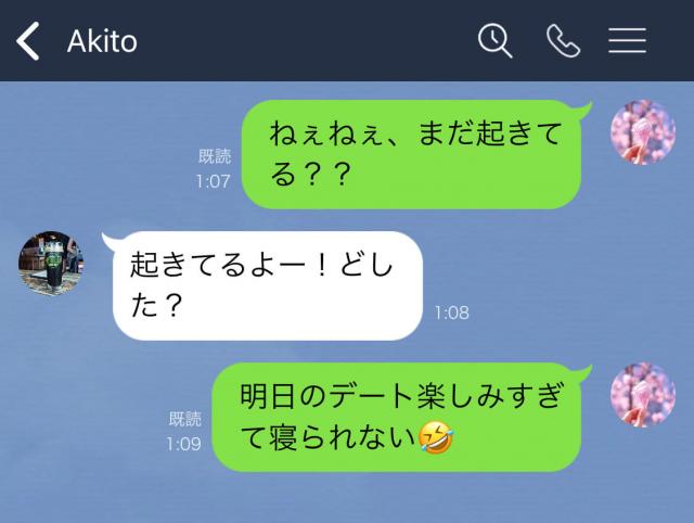 心配になって返事をしたら、『明日のデート楽しみすぎて寝られない』と返事が。