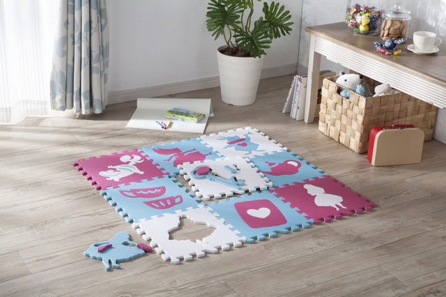 廊下や縁側に細長くセッティングも可能なので、好きな大きさにカスタマイズして、転んでも気にしない遊びスペースを作ってみて。