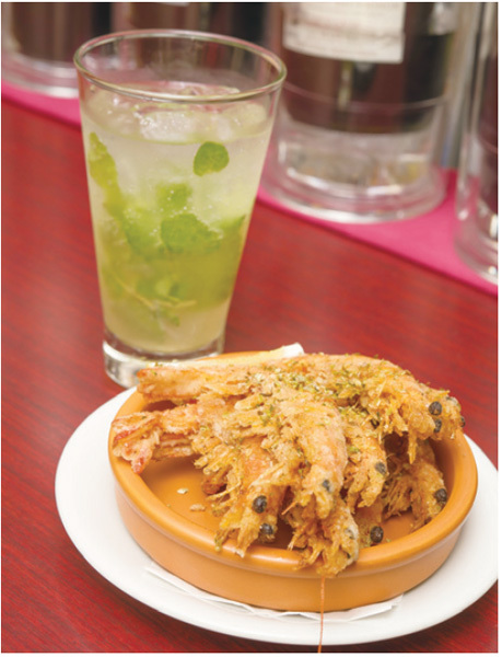 スペインの近代的なバルを再現しており、天井から吊るされたランプがムーディーな雰囲気を演出。テーブルがミシンの台であったり、スタンディングスペースに絵画が飾られていたりと、内装にもこだわりが感じられる。ドリンクは豊富で、生姜などをコトコト煮込んだ自家製ジンジャエールを使用した「フレッシュジンジャーモヒート」(740円)やオーガニックワインなど、体にやさしいお酒も揃えている。豊富なタパスやオリジナルのパエリアなどフードメニューも魅力。