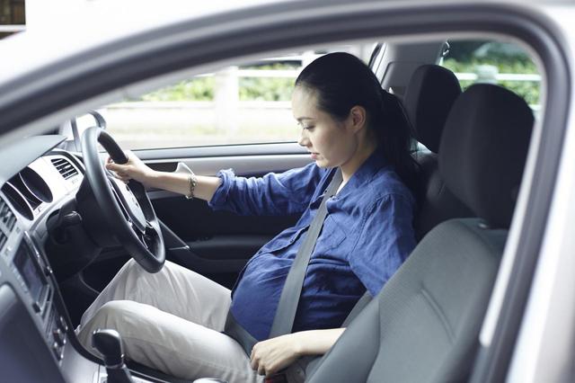 ・車を運転する場合は、ハンドルとペダルに手足が楽に届く範囲内で、腹部とハンドルの距離が十分確保できるよう注意し、無理のない姿勢で座る。