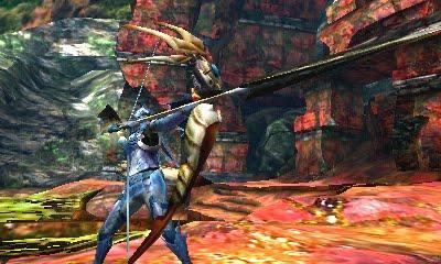 さて、弓と片手剣の使用感についてもレポートしよう。まず弓だが、こちらの操作感は3Gとさほど変わってはいない。ただし、操作が2つ用意されており、従来のXボタンで溜めてRボタンで照準をつけるスタイルに加え、Rボタンで溜めてXボタンで照準をつけるスタイルも選ぶことができるようになった。これはおそらく3DSのボタン配置の仕様上の問題だろう。前作での課題をきちんと解決してくる姿勢には好感が持てる。