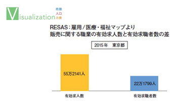 しかし、実際には、事務職など、一部の職種・業種に人気が集中し、求人と求職者ニーズが合わない、雇用のミスマッチは大きい。労働環境の良くないイメージが強い販売業は、求職者数が少なく、15年の東京都の場合、有効求人数と求職者数の差は、およそ2倍の開きがあった。