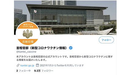 首相官邸の公式Twitterアカウント「首相官邸(新型コロナワクチン情報)」の運用が1月22日にスタートした。アカウント名は@kantei_vaccine。