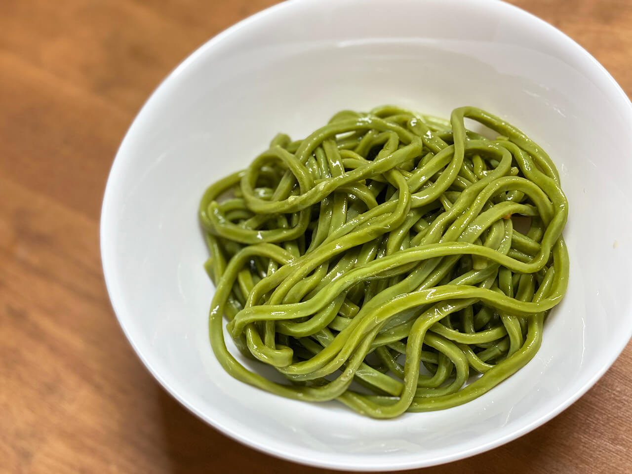 鮮やかすぎるグリーンの麺は一度見ると脳裏に焼きつく“ザ・緑”。