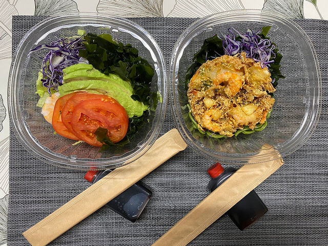 定番、えびとアボカドの組み合わせは当然バッチリ!わかめ麺との相性も抜群でです。これ1杯でかなりお腹もいっぱい、食べ応え最高です。