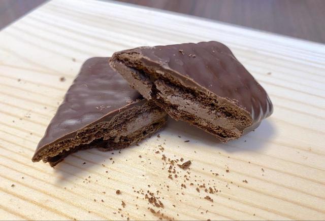 ほろ苦いビターチョコレートをサクサクのビスケットでサンドし、さらに上からチョコレートでコーティングをほどこした一品。