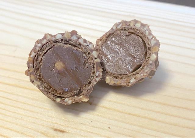 中はヘーゼルナッツとココアクリーム、さらにそれをウエハースが包んでいます。