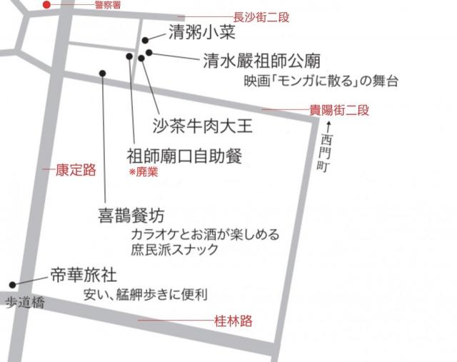 艋舺エリアの清水巖祖師廟周辺地図 ※『台湾縦断! 人情食堂と美景の旅』光瀬憲子著(双葉社)より