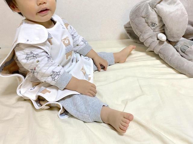袖口もサイズも余裕があるので、3歳くらいまで使い続けることができそう! 季節を問わず、長く使い続けたい方におすすめのスリーパーですよ。