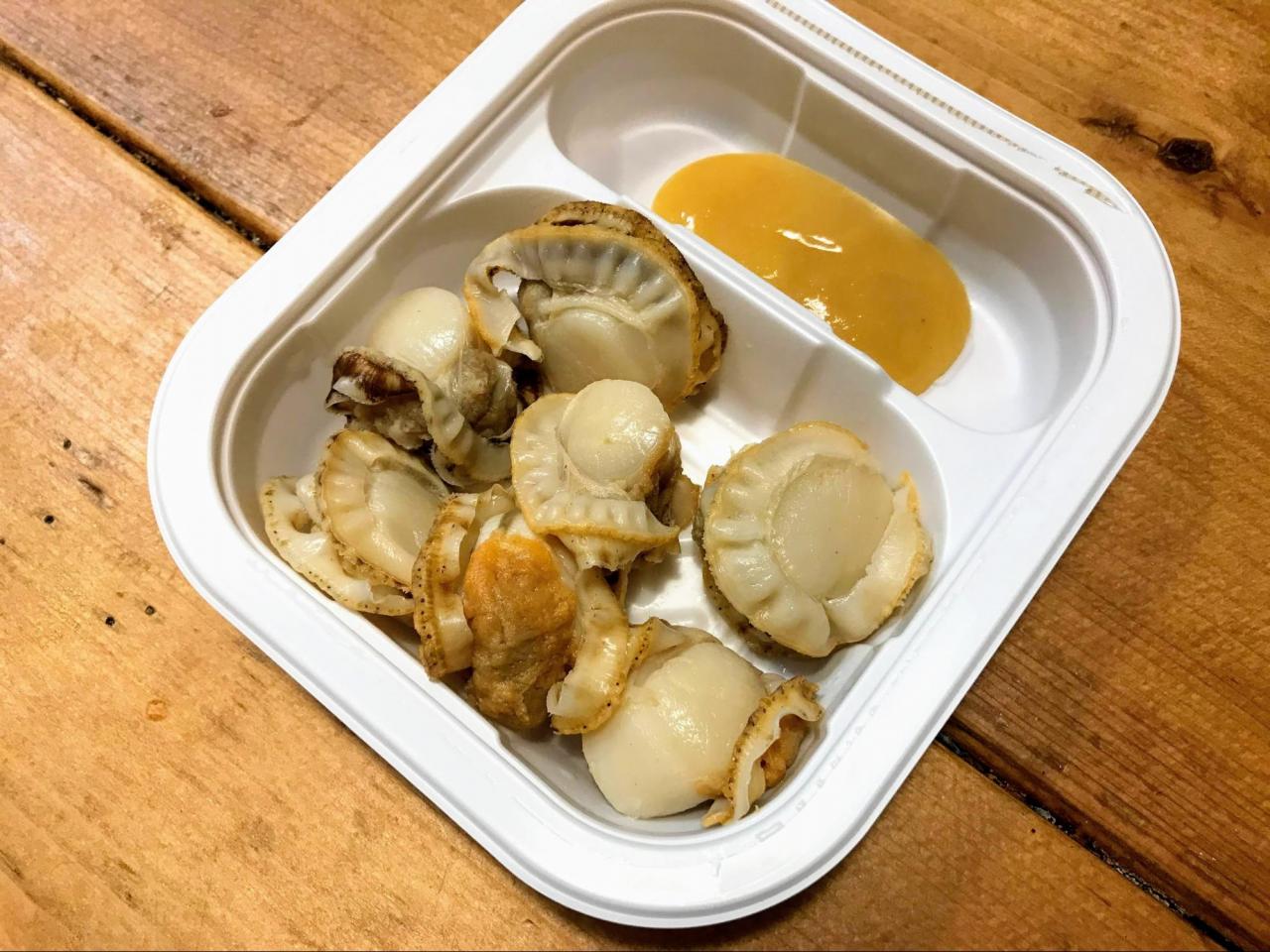 付属のカラシ噌をつけて食べるのですが、これがホタテと相性抜群!