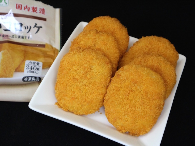 1袋に6個入りのコロッケが、100円(税別)で購入できます。揚げてあるのでレンジで温めるだけですぐに食べられます。