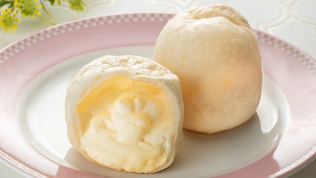 中には、薄皮のシュー生地にマッチする、なめらかで、卵のコクとミルクの風味が感じられるミルククリームが入っています。