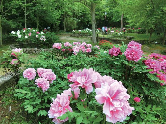 他にも約40種200株が大輪の花を咲かせるぼたん園や、6月頃からは約4000株が咲く花しょうぶ園など、季節を追って楽しめる。