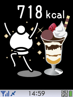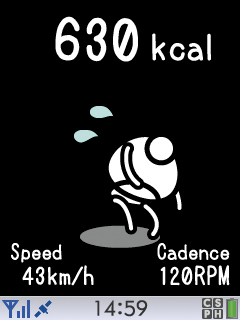 ダイエットモードでは消費カロリーを数値と29種類の食べ物で表示。ペダル回転数に合わせて変化するキャラクターの動きもお楽しみ。